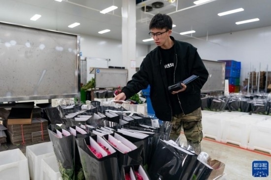 每天,由花農(nóng)采摘的鮮花進(jìn)入分揀包裝車(chē)間,預(yù)冷、分級(jí)、包裝、入庫(kù)冷藏等工作井然有序地開(kāi)展。經(jīng)過(guò)采后處理的鮮花一部分通過(guò)園區(qū)自有物流直接向客戶(hù)發(fā)貨,一部分則由專(zhuān)門(mén)的鮮花運(yùn)輸車(chē)運(yùn)往昆明國(guó)際花卉拍賣(mài)交易中心,開(kāi)啟拍賣(mài)流程。