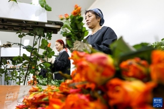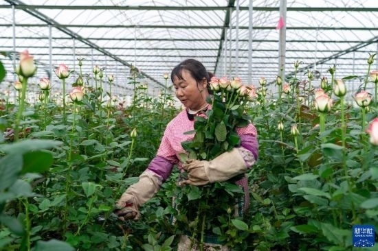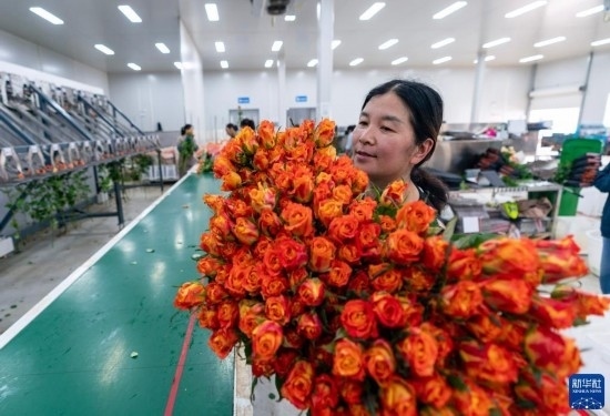 清晨,在云南省昆明市晉寧區(qū)云天化晉寧花卉產(chǎn)業(yè)現(xiàn)代化示范園內(nèi),品類(lèi)各異的鮮花競(jìng)相綻放,花農(nóng)們?cè)诂F(xiàn)代化大棚里忙著采摘、搬運(yùn)。云天化晉寧花卉產(chǎn)業(yè)現(xiàn)代化示范園是集育苗、智能溫室大棚、水肥一體化、無(wú)土綠色栽培、全程數(shù)字化管理系統(tǒng),以及鮮切花采后處理、預(yù)冷儲(chǔ)藏等為一體的高標(biāo)準(zhǔn)設(shè)施農(nóng)業(yè)產(chǎn)業(yè)園區(qū),年產(chǎn)鮮切花1.6億枝。