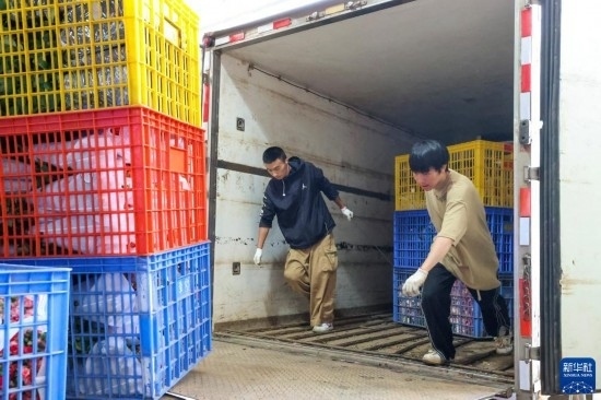 一名花商在昆明國(guó)際花卉拍賣(mài)交易中心外準(zhǔn)備將拍得的鮮花裝車(chē)運(yùn)走(7月13日攝)。新華社記者 陳欣波 攝