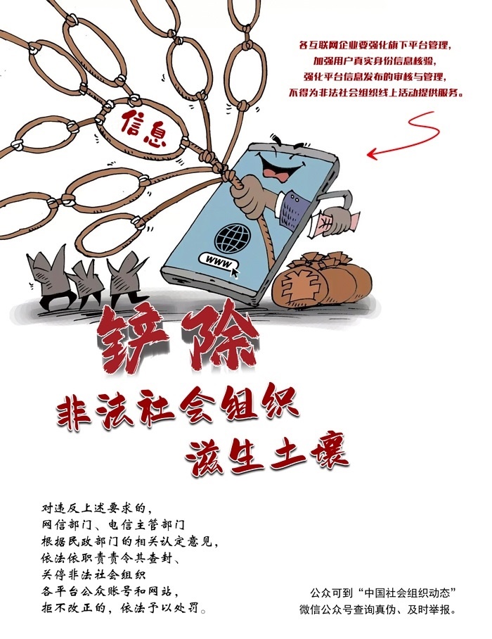 人民網(wǎng)北京8月7日電 近日,民政部社會(huì)組織管理局圍繞近期發(fā)生的非法社會(huì)組織活動(dòng)進(jìn)行提醒,要求各地各相關(guān)部門進(jìn)一步提高政治站位,確保打擊整治工作落到實(shí)處。公眾可到“中國(guó)社會(huì)組織動(dòng)態(tài)”微信公眾號(hào)查詢真?zhèn)?、及時(shí)舉報(bào)。(宋子節(jié) 實(shí)習(xí)生李珂)