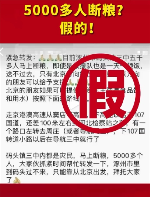 8月7日,“涿州發(fā)布”辟謠稱,網(wǎng)傳消息不實(shí)。同時(shí),“涿州發(fā)布”還呼吁網(wǎng)民共同抵制網(wǎng)絡(luò)謠言。