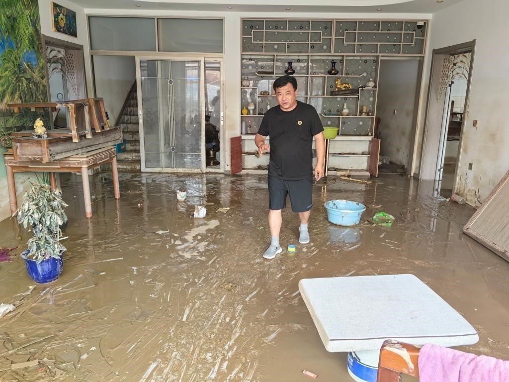 望海莊村艷天綜合商店門前,村民楊立新和趕來幫忙的親戚朋友正在一起整理受損貨品,這個(gè)村里最大的超市此次受災(zāi)較重?!皳p失不少,但我們不能光等著,先把能搶救的搶救出來,能收拾的都收拾干凈,盡己所能先恢復(fù)。”楊立新說。
