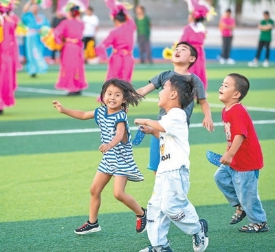 8月9日,小朋友在黑龍江省五常市時(shí)代中學(xué)集中安置點(diǎn)玩耍。新華社記者 張 濤攝
