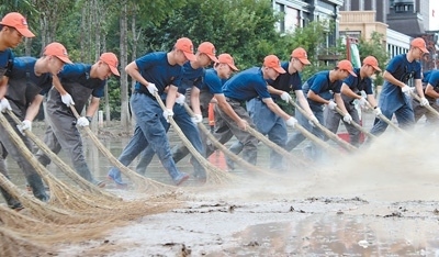8月11日,黑龍江省哈爾濱森林消防支隊組織骨干力量組成黨員突擊隊,在尚志市進行清淤、排水工作。本報記者 張藝開攝