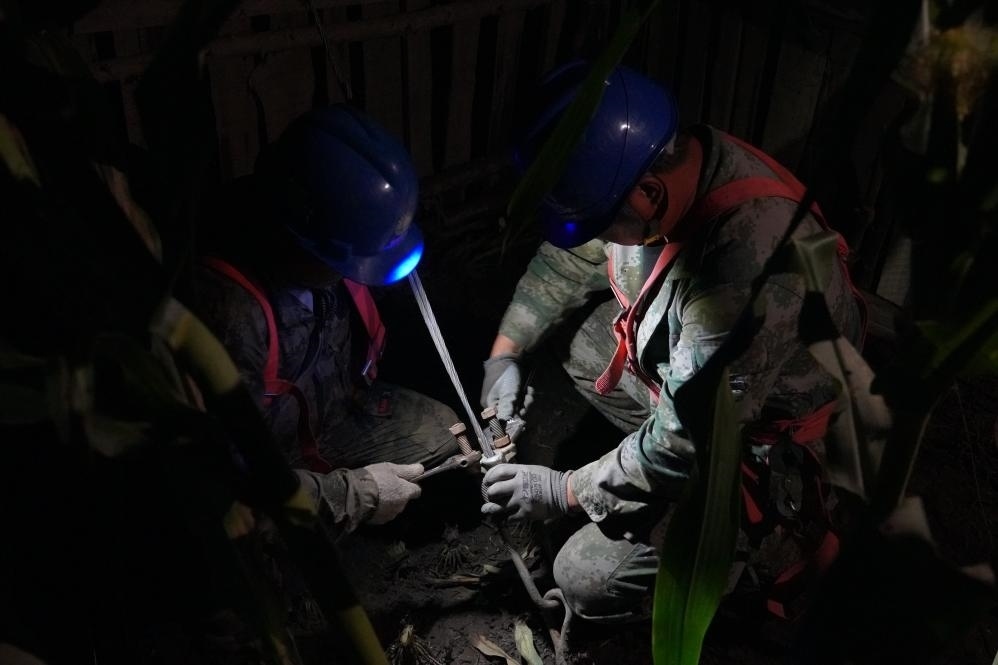 國網(wǎng)牡丹江供電公司電力搶修人員連夜進行搶修。(受訪者供圖)