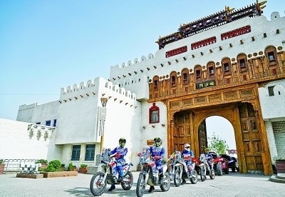新疆和田地區(qū)約特干故城景區(qū),2023年中國(guó)環(huán)塔(國(guó)際)拉力賽參賽代表參加旅游展示活動(dòng)。新華社發(fā)