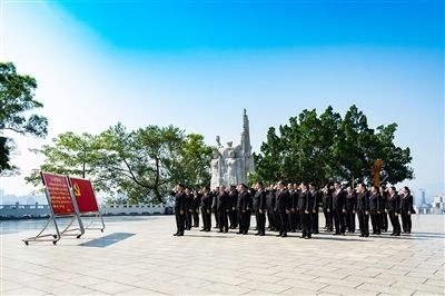 “我志愿加入中國共產(chǎn)黨,擁護黨的綱領(lǐng),遵守黨的章程……”今年7月,百色市中級人民法院黨員到百色起義革命烈士紀(jì)念碑廣場開展黨日活動,緬懷革命先烈,重溫入黨誓詞。鏗鏘的誓詞,久久回蕩在紀(jì)念碑上空,銘刻在每一個人的心頭。