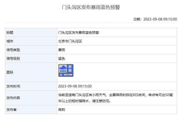 當前至傍晚門頭溝區(qū)有小雨天氣,主要降雨時段在8日夜間,單點有可達50毫米以上的短時強降水,請注意防范。