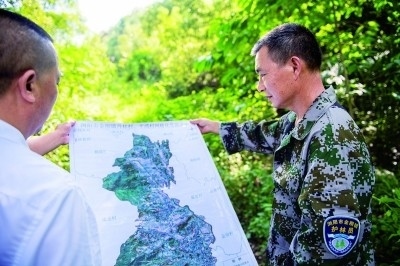 湖南省長(zhǎng)沙市瀏陽(yáng)市金剛鎮(zhèn)林長(zhǎng)制專職護(hù)林員在記錄古樹生長(zhǎng)情況。新華社發(fā)