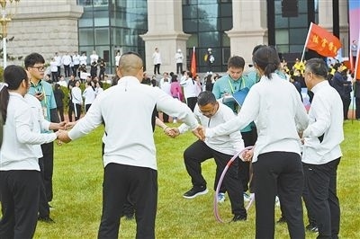 一邊是如火如荼的競速賽事,一邊是輕松愉快的友誼賽與趣味賽。小游戲有大學(xué)問,乒乓球托球跑接力賽講究的是穩(wěn)中求進(jìn),呼啦圈傳遞賽則考驗著合作無間的智慧。