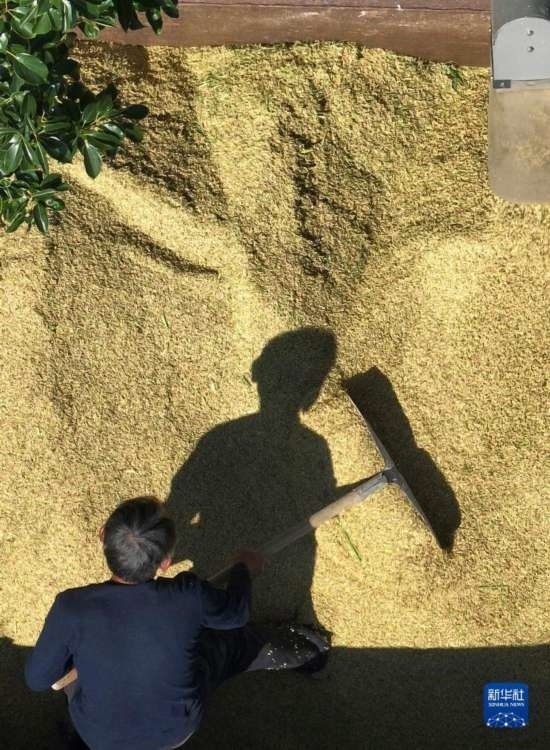 入秋以來,湖南各地晚稻陸續(xù)成熟,農(nóng)民抓住好天氣搶收晾曬。