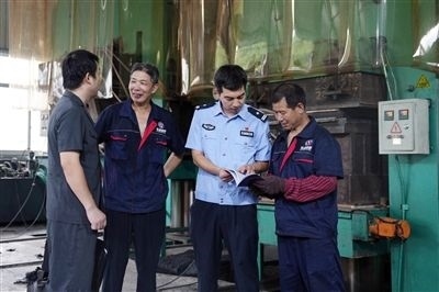 圖②:三門法院執(zhí)行干警實(shí)地走訪涉執(zhí)企業(yè)。