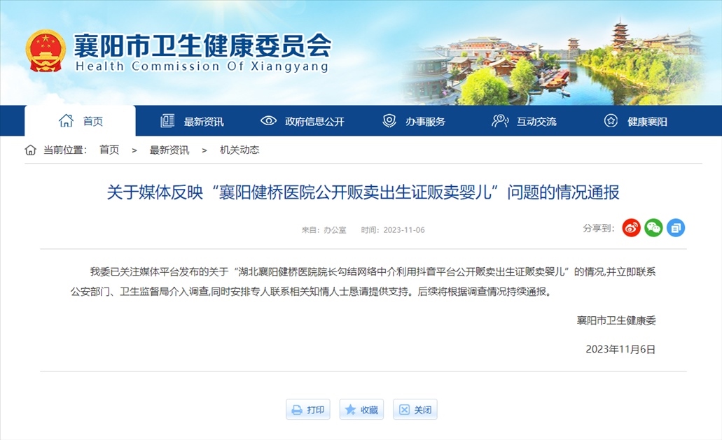 ·醫(yī)院院長被舉報涉嫌販賣出生證,襄陽衛(wèi)健委通報:聯(lián)系公安部門、衛(wèi)生監(jiān)督局介入調查,同時安排專人聯(lián)系相關知情人士懇請?zhí)峁┲С?。后續(xù)將根據(jù)調查情況持續(xù)通報。