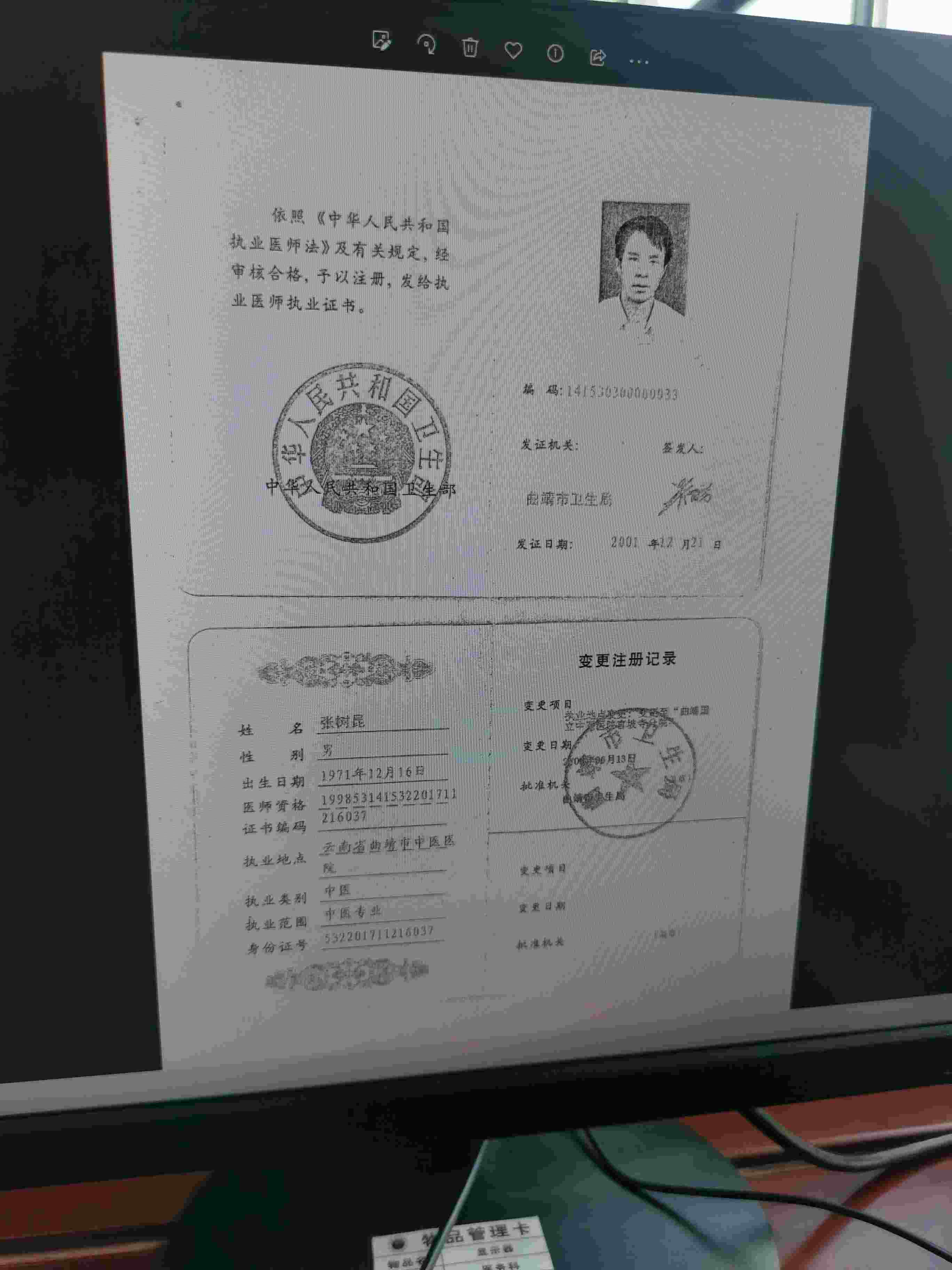 而在曲靖中醫(yī)醫(yī)院官網上,張樹昆醫(yī)生的簡介為:推拿科主任醫(yī)師,擅長應用推拿手法、針灸、中藥、微創(chuàng)介入治療肩、頸、腰腿等骨科疾病及各種神經性、疼痛性疾病。