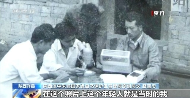 陜西漢中朱鹮國家級自然保護(hù)區(qū)管理局原副局長 路寶忠:這個照片上這個年輕人就是當(dāng)時的我。我們4人小組要在野外去觀察朱鹮,帶上望遠(yuǎn)鏡,帶上海拔儀,然后掌握朱鹮的一些活動規(guī)律。它在什么地方活動,這個地方海拔高度有多高,然后我們要做好觀察記錄。