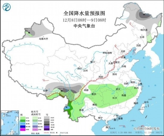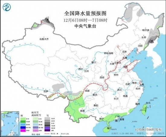 全國降水量預(yù)報圖(12月6日08時-7日08時)
