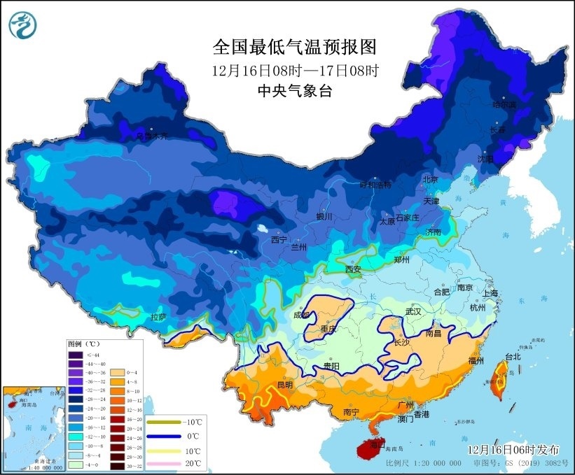 中央氣象臺12月16日06時發(fā)布寒潮藍色預(yù)警: