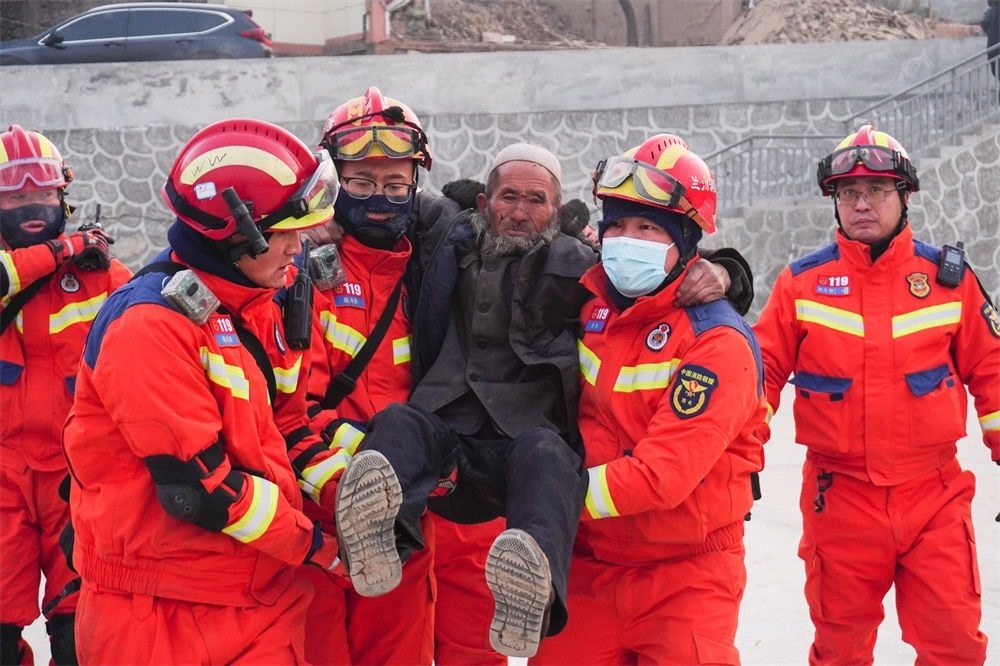 19日凌晨4時許,積石山縣大河家鎮(zhèn)陳家村一名埋壓在廢墟下的人員被甘肅消防救出。接著,多個村子傳來被困人員及時得到救援脫困的消息。截至19日15時,甘肅省消防救援總隊現(xiàn)場消防救援力量累計營救被困人員67人,轉(zhuǎn)移疏散685人。