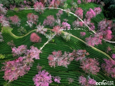 2023年12月18日,云南大理,無量山櫻花谷的冬櫻花迎來最佳觀賞期。如云似霞的櫻花與碧綠如染的茶園交織在一起,構(gòu)成了一道亮麗的風景。