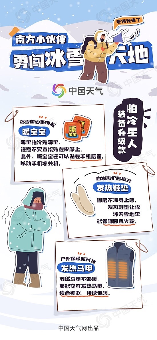 央視網(wǎng)消息:據(jù)中國天氣網(wǎng)訊,“哈爾濱凍梨都擺盤了”、“鄂倫春族驚現(xiàn)中央大街”、“爾濱,又整活兒了”……這個(gè)冬季,哈爾濱爆火出圈,成為新晉“頂流”,帶火了一眾冰雪旅游地。隨著寒假的到來,預(yù)計(jì)又有一大批來自各地的小土豆、小橘子、小辣椒將勇闖冰雪世界。但東北旅游真不是說走就能走的,-20℃甚至-30℃的氣溫分分鐘教你認(rèn)清現(xiàn)實(shí)。中國天氣網(wǎng)推出東北旅游防寒保暖攻略,一圖掌握冰雪游防凍保命穿搭。