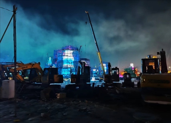 夜間的冰雪大世界園區(qū)施工現(xiàn)場。圖源:受訪者供圖