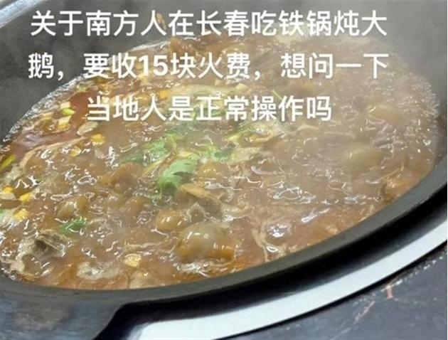 ·游客稱在長春吃鐵鍋燉被收15元火費,店家回應系底料錢。