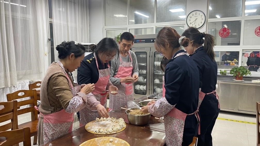 18時(shí)許,他們邀請王靚怡一家人以及與她同批入職的呂非凡、王悅、姜紅南等3名東北女孩,來到車站食堂包餃子。