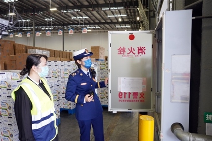 張文在檢查商戶的消防設(shè)備。(受訪者供圖)