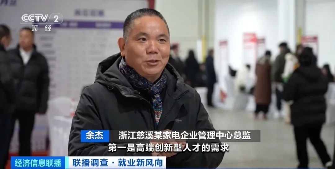 浙江慈溪某家電企業(yè)管理中心總監(jiān) 余杰:第一是高端創(chuàng)新型人才的需求,第二是一線產(chǎn)業(yè)工人的需求。接下來(lái)幾年,我們企業(yè)對(duì)智能化、數(shù)字化的人才有大量需求,市場(chǎng)很欠缺。