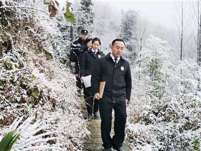 寒冷的冬日,重慶市云陽(yáng)縣人民法院江口人民法庭的干警驅(qū)車來(lái)到沙市鎮(zhèn)新橋村,將一起侵權(quán)糾紛案件的傳票送到原、被告家中。送達(dá)路上,雪越下越大,車越開越慢,平日里半個(gè)小時(shí)的車程足足行駛了一個(gè)多小時(shí)。