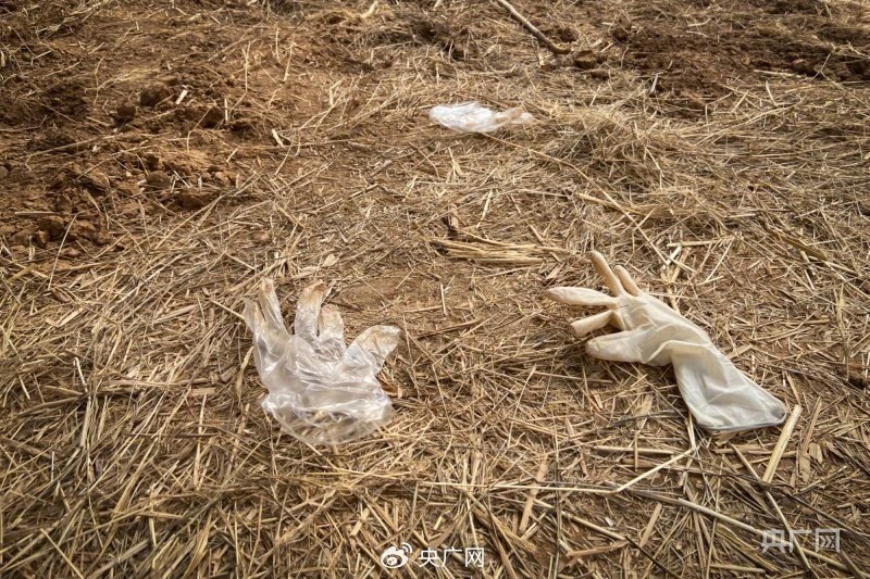 案發(fā)現(xiàn)場(chǎng)散落著一次性手套和橡膠手套(記者 王偉倩 攝)