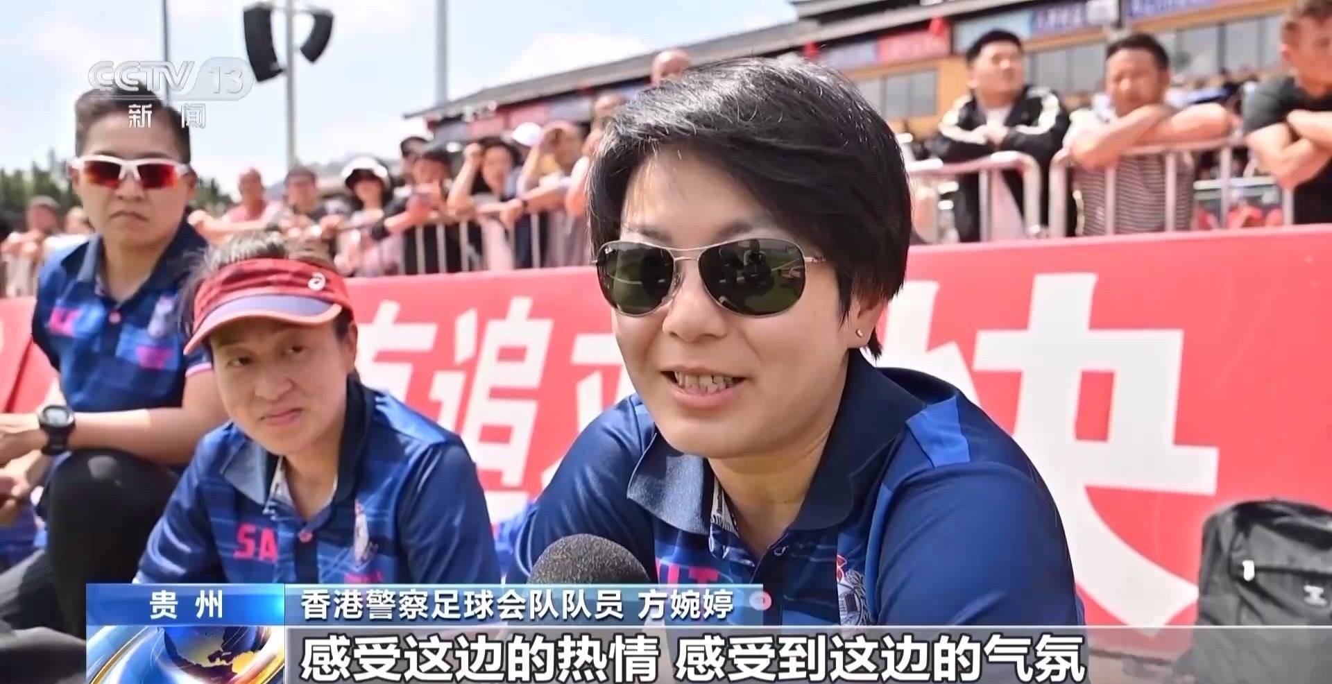 香港警察足球會(huì)隊(duì)隊(duì)長(zhǎng) 陳憲鈞:這是我們第一次來(lái)貴州,給我們的印象很深,人們都很熱情,我們很開(kāi)心來(lái)到這里,因?yàn)樵谙愀畚覀円部催^(guò)“村超”的現(xiàn)場(chǎng),所以我們有機(jī)會(huì)來(lái)到這里,跟大家一起踢(足球),我覺(jué)得非常開(kāi)心。我們希望可以跟尤其是年輕人多交流,讓他們認(rèn)識(shí)我們香港警隊(duì)。