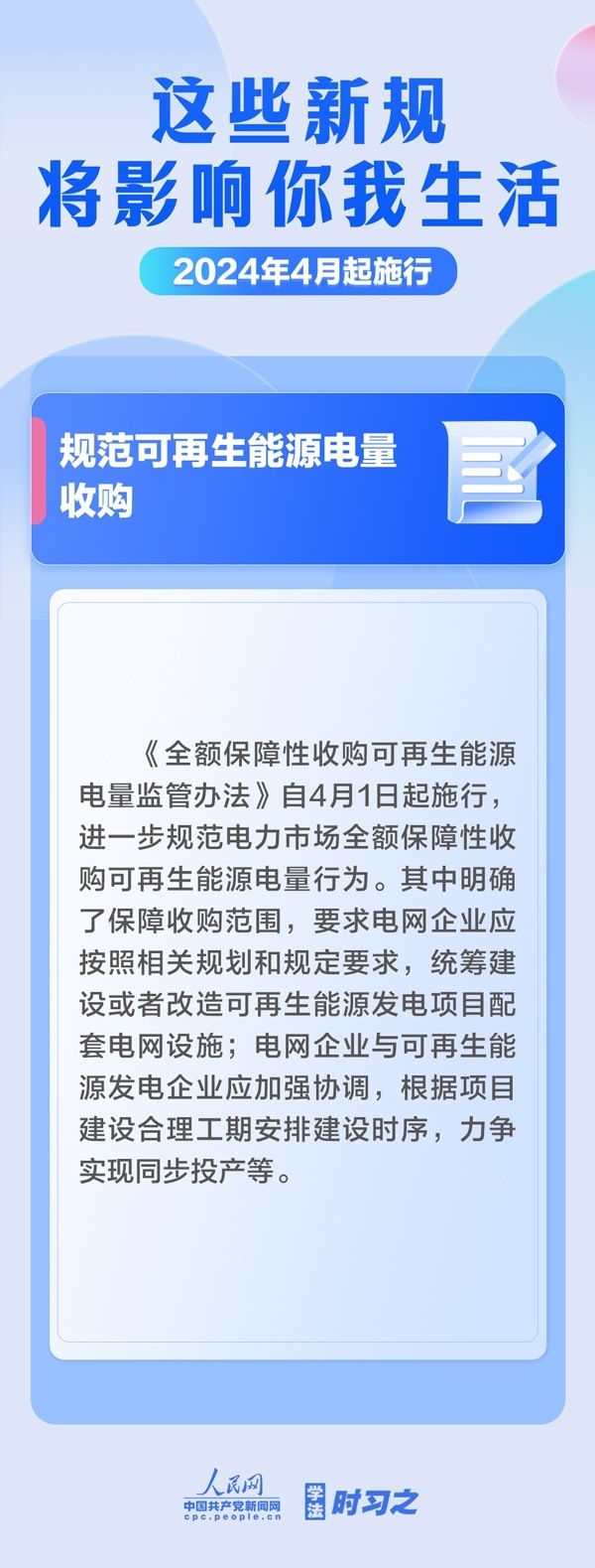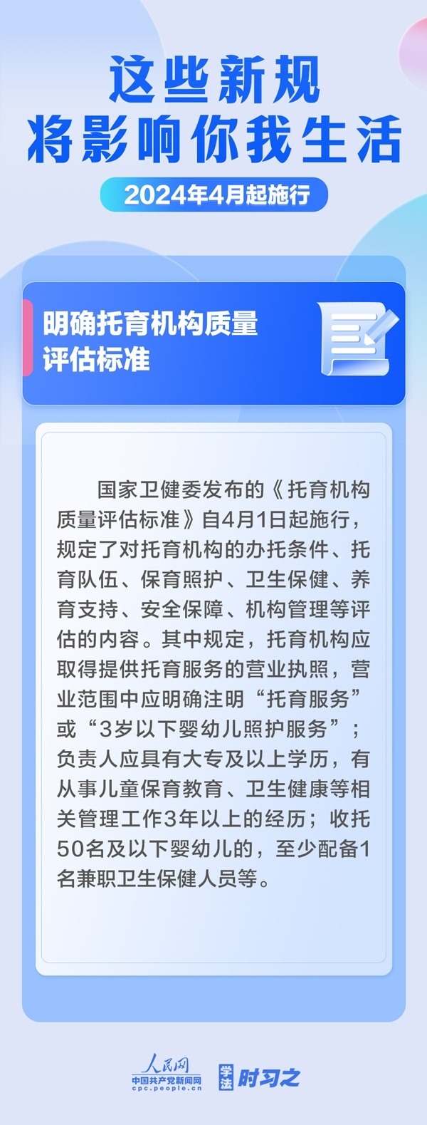 加強(qiáng)中央儲(chǔ)備棉管理;明確托育機(jī)構(gòu)質(zhì)量評(píng)估標(biāo)準(zhǔn);規(guī)范可再生能源電量收購……4月起,這些新規(guī)施行,將影響你我生活。