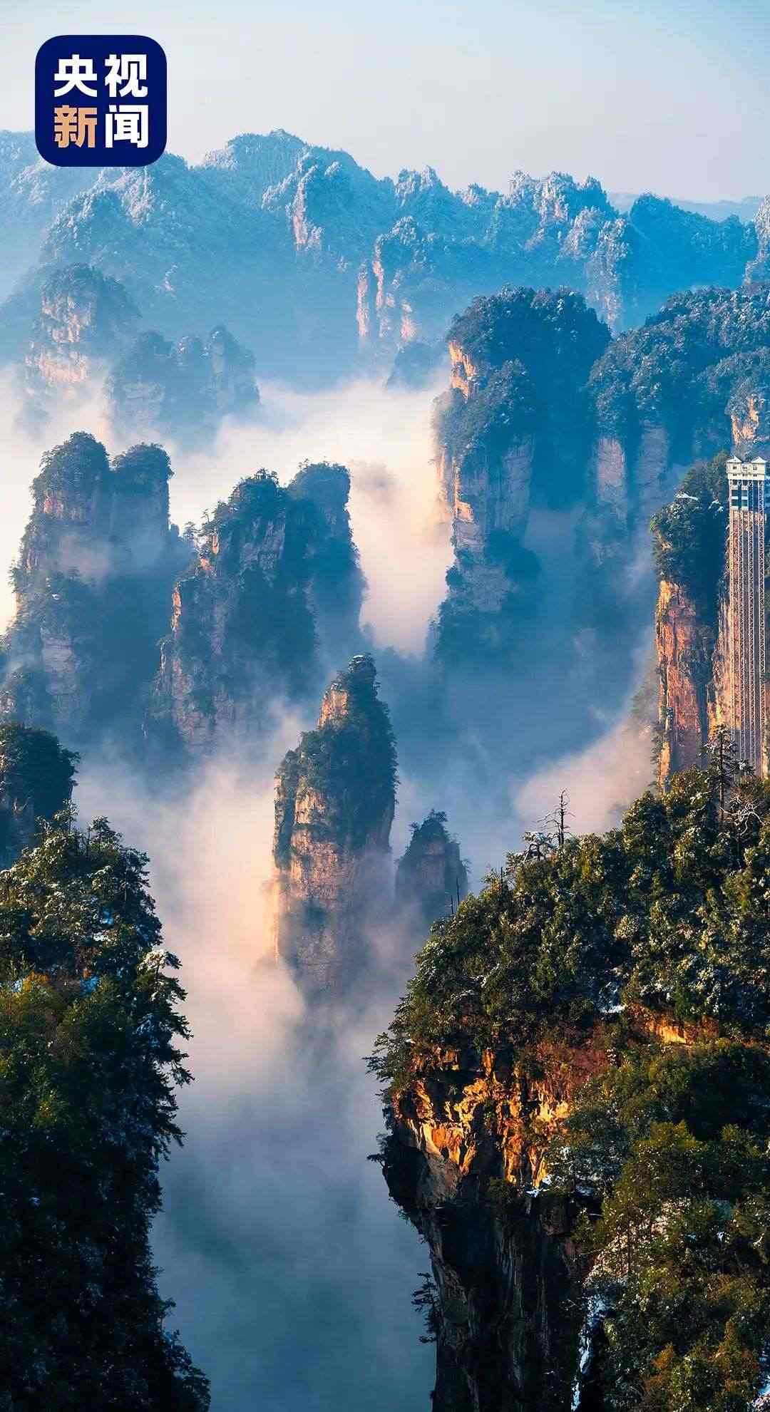 “三千奇峰,八百秀水?!睆埣医鐕疑止珗@是中國第一個國家森林公園,久負(fù)盛名,是世界自然遺產(chǎn),世界地質(zhì)公園。這里3103座形態(tài)各異的峰柱、峰叢、峰墻錯落有致,氣勢雄壯,點綴其中的湖泊、泉水、溪流,又為它增添了幾分清秀。