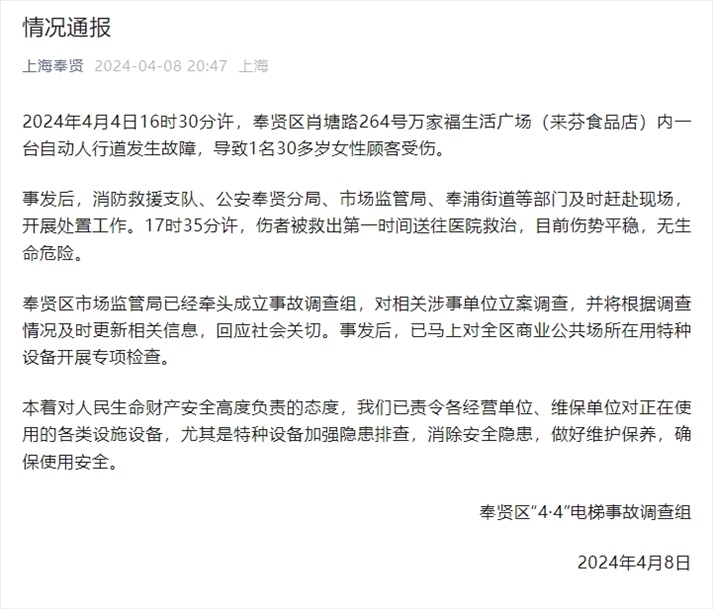 ·身體被卷入扶梯女子面臨截肢風(fēng)險,屬地政府及街道辦等部門均已介入。上海奉賢通報稱成立事故調(diào)查組。