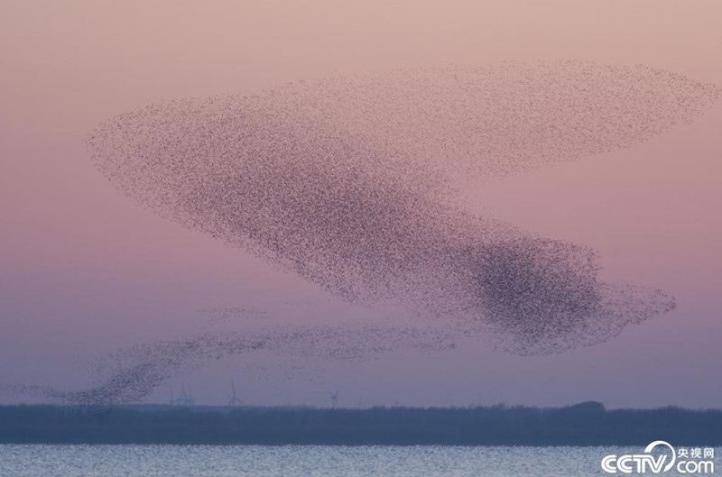 沈陽康平縣臥龍湖生態(tài)區(qū)水域上空,數(shù)萬只花臉鴨同時與夕陽共舞,形成壯觀的“鳥浪”。