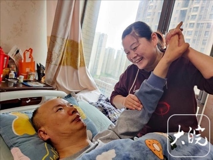 合肥女子孫紅霞的丈夫2014年突發(fā)疾病,成為“植物人”,至今整整10年。3600多個日夜里,她不離不棄,悉心照料,終于喚醒了沉睡的愛人,讓他漸漸有了一些意識。談及未來,孫紅霞表示,她在心里早已寫好了八個字的答案,那就是“堅持到底,永不放棄”,迎接下一個十年、二十年,乃至一輩子。
