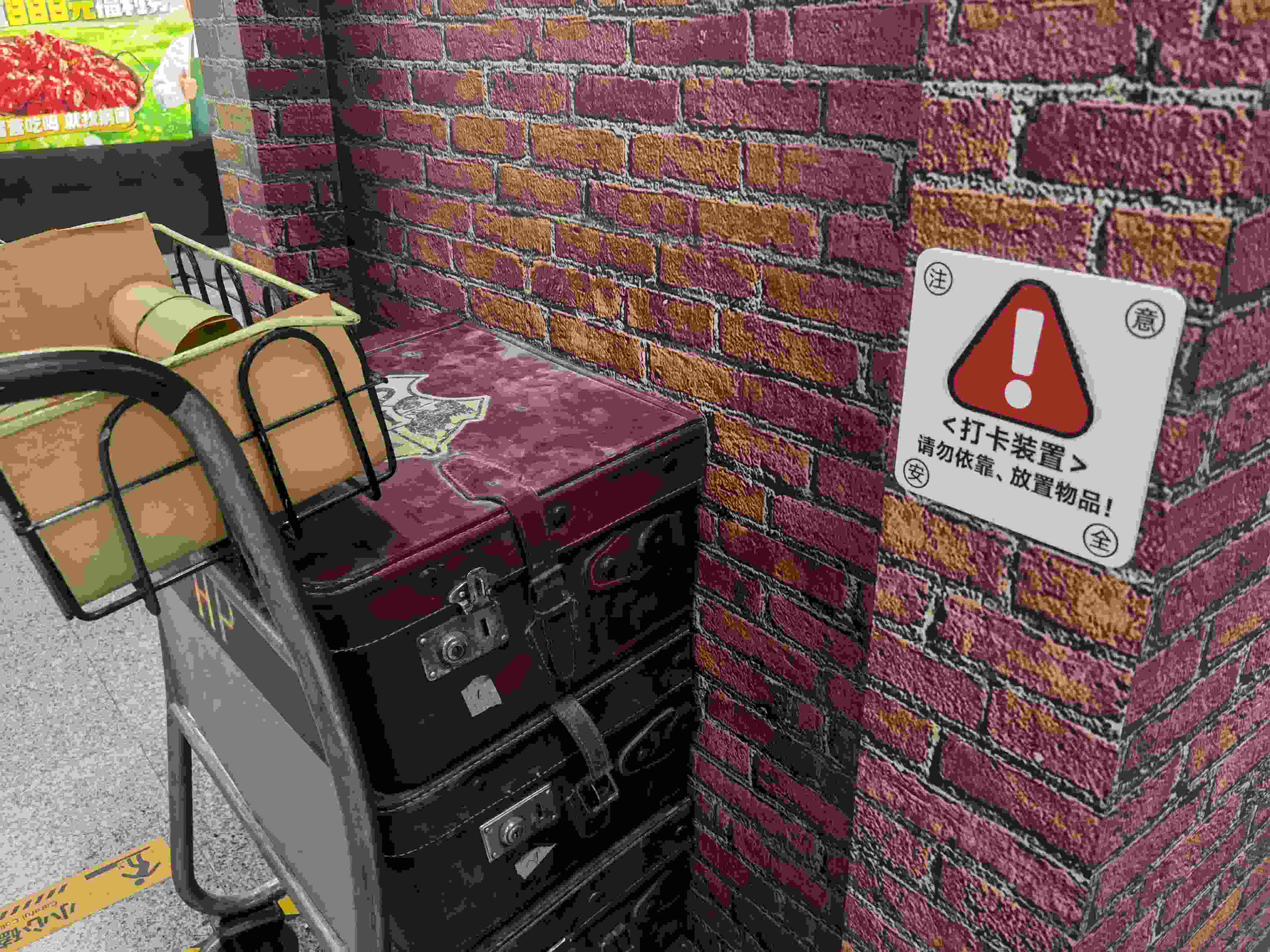 “北京也有9 站臺了!還有誰沒去打卡?”4月9日,在不少社交平臺,這處新加裝的“哈利·波特”主題景觀裝飾墻火了。4月9日下午,記者在地鐵4號線北京大學東門站的站臺上看到,站臺中間被裝飾成了《哈利·波特》經(jīng)典場景9 站臺的樣子。在站臺中間過道處,每一根立柱都被紅磚樣式的海報包裹。最中間的兩根立柱前,分別放置了一輛和電影中一樣“隱沒”在墻里的行李車,車上有3個紅色的小皮箱和一筐黃色的紙卷軸,給整個地鐵站營造出一種復古的魔法風,吸引了不少乘客圍觀拍照。