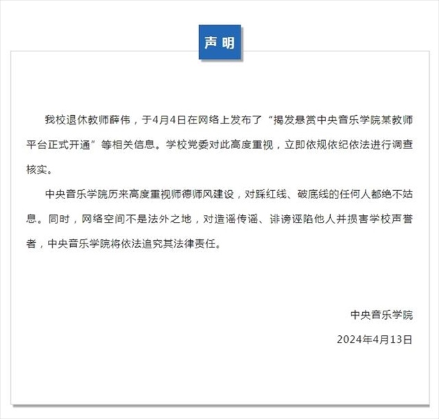 ·中央音樂學院回應(yīng)學校系主任被舉報:立即調(diào)查,絕不姑息。