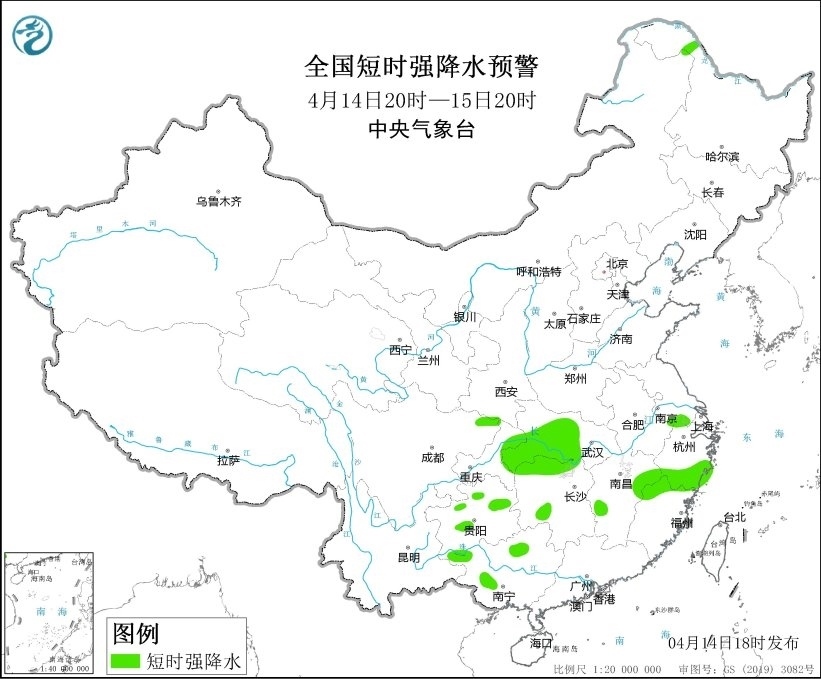 央視網(wǎng)消息:中央氣象臺4月14日18時繼續(xù)發(fā)布強對流天氣藍(lán)色預(yù)警。