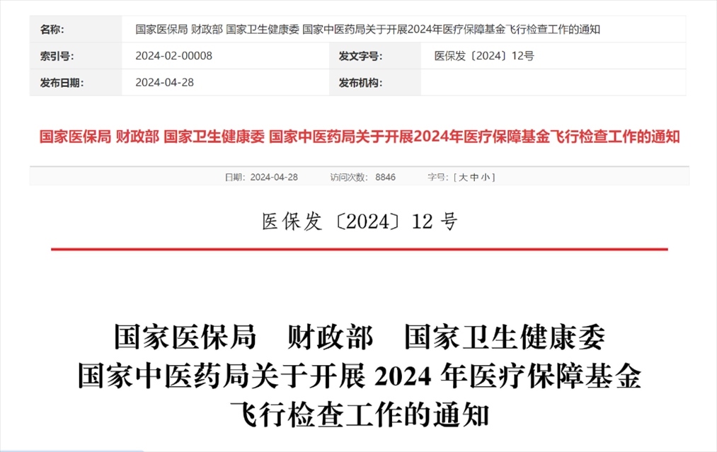 這項(xiàng)《關(guān)于開展2024年醫(yī)療保障基金飛行檢查工作的通知》由國(guó)家醫(yī)保局、財(cái)政部、國(guó)家衛(wèi)生健康委、國(guó)家中醫(yī)藥局聯(lián)合印發(fā)。