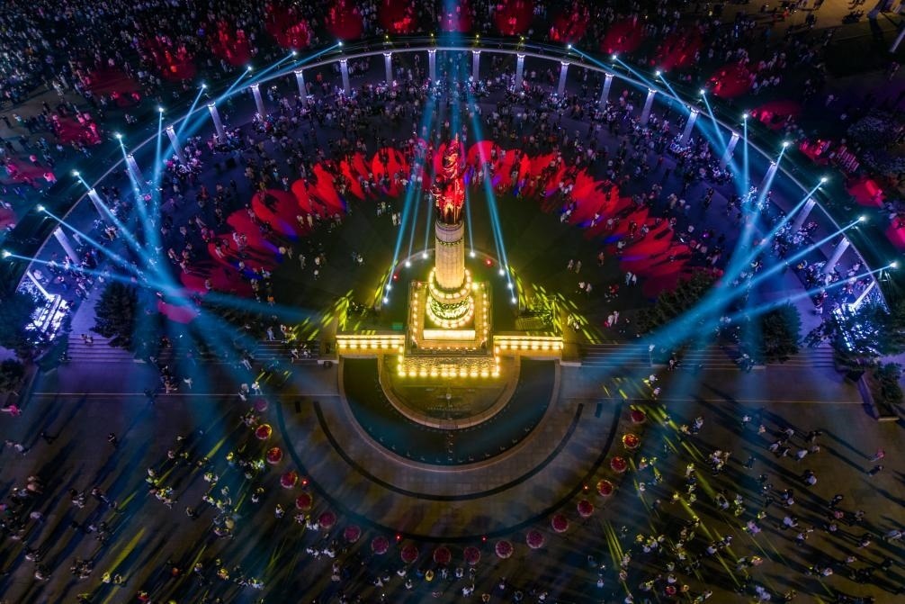 夜幕降臨,哈爾濱防洪勝利紀(jì)念塔廣場(chǎng)格外絢麗,萬(wàn)眾期待的松花江光影秀準(zhǔn)時(shí)上演。聲、光、電交織舞動(dòng),以防洪紀(jì)念塔為中心,隔江呼應(yīng)著太陽(yáng)島,每一次光影的變化都映射出這座城市獨(dú)特的文化意象。