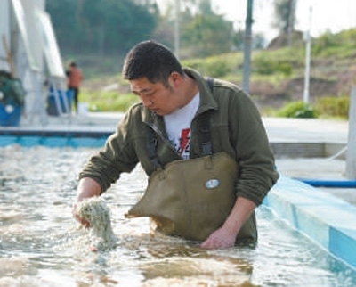 “養(yǎng)魚是個(gè)技術(shù)活兒。”一大早,農(nóng)民技術(shù)員倪闖便在重慶網(wǎng)聯(lián)淡水魚養(yǎng)殖場(chǎng)忙碌開了,他一邊為魚兒喂食,一邊仔細(xì)觀察魚兒狀態(tài)。2009年,倪闖辦起了魚苗培育基地,憑借一手好技術(shù),逐漸成為遠(yuǎn)近聞名的養(yǎng)魚能手。在相關(guān)部門支持下,倪闖每年都會(huì)定期對(duì)村民進(jìn)行技術(shù)培訓(xùn),還經(jīng)常到其他養(yǎng)殖場(chǎng)進(jìn)行技術(shù)指導(dǎo)。
