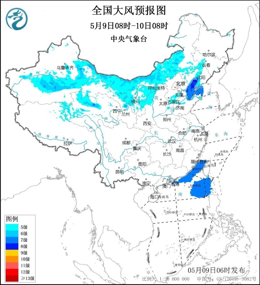 需要注意的是,今明兩天,北方部分地區(qū)風(fēng)力加大,中央氣象臺(tái)今晨繼續(xù)發(fā)布大風(fēng)藍(lán)色預(yù)警。預(yù)計(jì)遼寧中北部、吉林中部、內(nèi)蒙古大部、新疆東部和南疆盆地、青海西部、甘肅西部、寧夏大部、陜西北部、河北南部等地的部分地區(qū)有5~6級(jí)、陣風(fēng)7~9級(jí)的大風(fēng)。