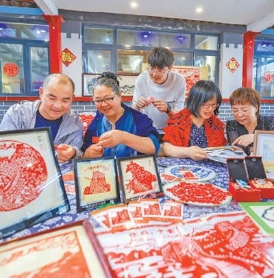 自2018年建成以來(lái),石峽村村史博物館成為村民定期培訓(xùn)的地方,也逐漸成為游客來(lái)石峽村游玩的打卡地之一。博物館以實(shí)物、文字、影像等方式展現(xiàn)了村落歷史、非遺項(xiàng)目、居家生活、農(nóng)耕勞作等內(nèi)容?!拔覀冞€推出了帶有長(zhǎng)城元素的布藝、剪紙、羽毛畫(huà)等互動(dòng)體驗(yàn)項(xiàng)目。”博物館負(fù)責(zé)人魏曉蕓說(shuō)。