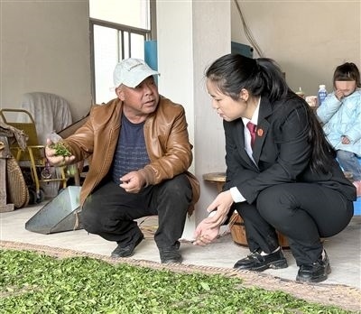 在茶園,法庭干警們向茶農(nóng)了解了茶葉產(chǎn)出和銷售情況,為茶農(nóng)詳細(xì)講解了茶葉在種植、采摘、加工、包裝過程中易發(fā)生的法律問題,解答了茶農(nóng)的法律疑問。同時,結(jié)合茶農(nóng)身邊發(fā)生的典型案例,用群眾聽得懂的語言,為茶農(nóng)講解了茶葉在運輸、銷售過程中應(yīng)防范的法律風(fēng)險,提升茶農(nóng)的法律意識,受到了茶農(nóng)的一致好評。