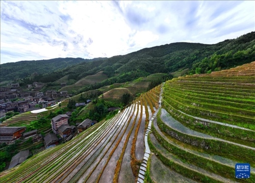 初夏時節(jié),廣西龍勝各族自治縣龍脊梯田景區(qū)內(nèi)2000多畝梯田生機(jī)盎然。