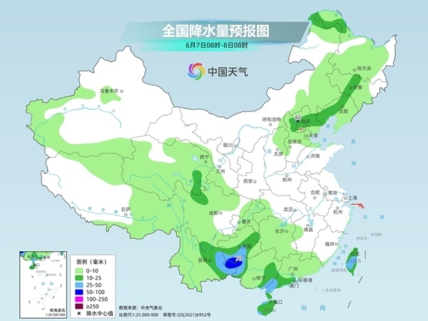 明天,內(nèi)蒙古東北部、東北地區(qū)西部、青海南部、華北北部、川西高原北部、西南地區(qū)南部、華南北部和南部、臺(tái)灣島等地部分地區(qū)有中到大雨,其中,貴州西南部、云南東南部、廣西西北部等地部分地區(qū)有暴雨(50~70毫米)。