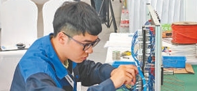 手持記號(hào)筆,目光如炬,只見軌道信號(hào)控制技術(shù)項(xiàng)目選手陳權(quán)(見圖,本報(bào)記者蔣雨師攝)在電路圖里精準(zhǔn)鎖定電路,將一個(gè)個(gè)接點(diǎn)逐一填入配線表,動(dòng)作行云流水,一氣呵成。在大賽現(xiàn)場(chǎng),軌道信號(hào)控制技術(shù)項(xiàng)目選手需要完成軌道信號(hào)設(shè)備的設(shè)計(jì)、施工、調(diào)試與檢修工作。就設(shè)計(jì)環(huán)節(jié)而言,選手們需要把上百條電路信號(hào)的轉(zhuǎn)轍機(jī)電路設(shè)計(jì)圖轉(zhuǎn)換為電路配線表,但凡有一個(gè)接點(diǎn)錯(cuò)誤,整個(gè)電路都將出現(xiàn)問題,而這一環(huán)節(jié),陳權(quán)只花了10分鐘。