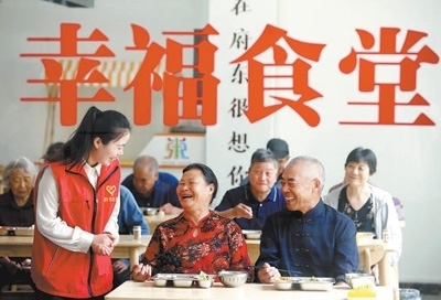 山東省臨沂市郯城縣府東社區(qū)幸福食堂,老年人正在就餐。張春雷攝(人民視覺(jué))